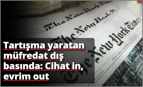 Türkiye’de tartışma yaratan okul müfredatındaki değişiklikler, yabancı medyanın da dikkatini çekiyor. New York Times gazetesi, Türkiye’nin yeni müfredatında ”Atatürk, Darwin ve Cihat” konularında yapılan değişikliklere dikkat çekerken, BBC News ”Cihat in, Evrim out” sözlerini kullandı.